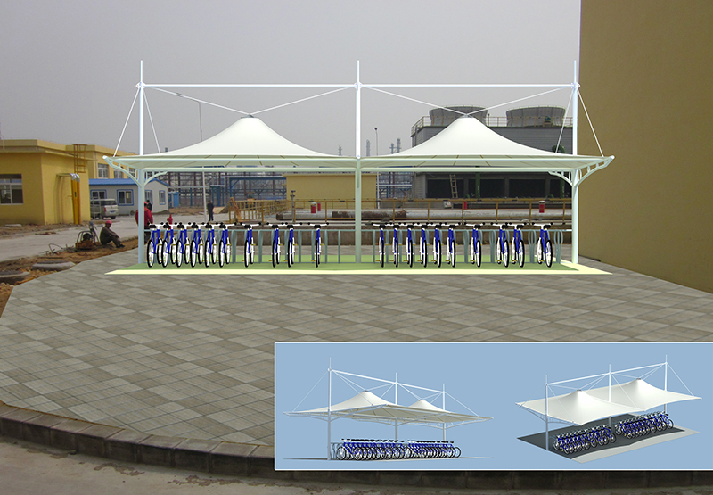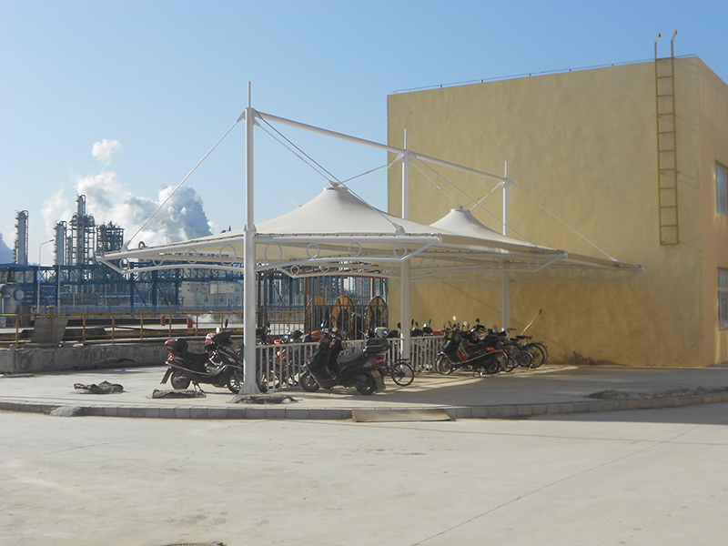 盤錦石油化工自行棚膜結(jié)構(gòu)工程 沈陽膜材料加工 2020-05-19 效果圖 本工程位于遼寧省盤錦,工程面積為100㎡;施工內(nèi)容:鋼結(jié)構(gòu)及膜材料制作加工安裝;膜材采用國產(chǎn)PVDF膜材料,正常使用壽命為15年;竣工日期:2016年6月