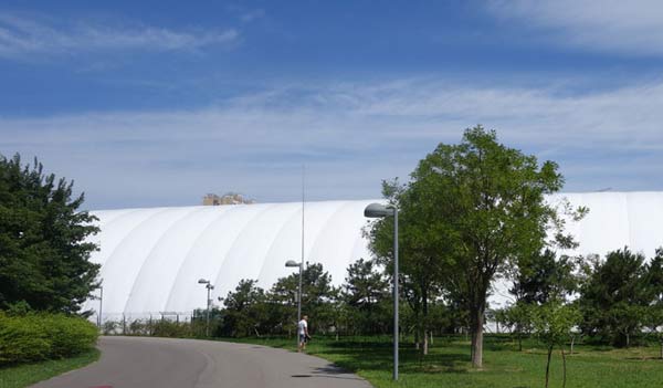 可建成無中心支持柱的大跨度修建,一些大型大眾活動場所,體育場館,請求室內構成無立柱,大面積的開闊空間,這就給修建師提出一個大難題。采 用膜結構車棚的房頂,疑問就大大簡化了。由于單位面積的膜很輕,大大減輕了骨架的承重。